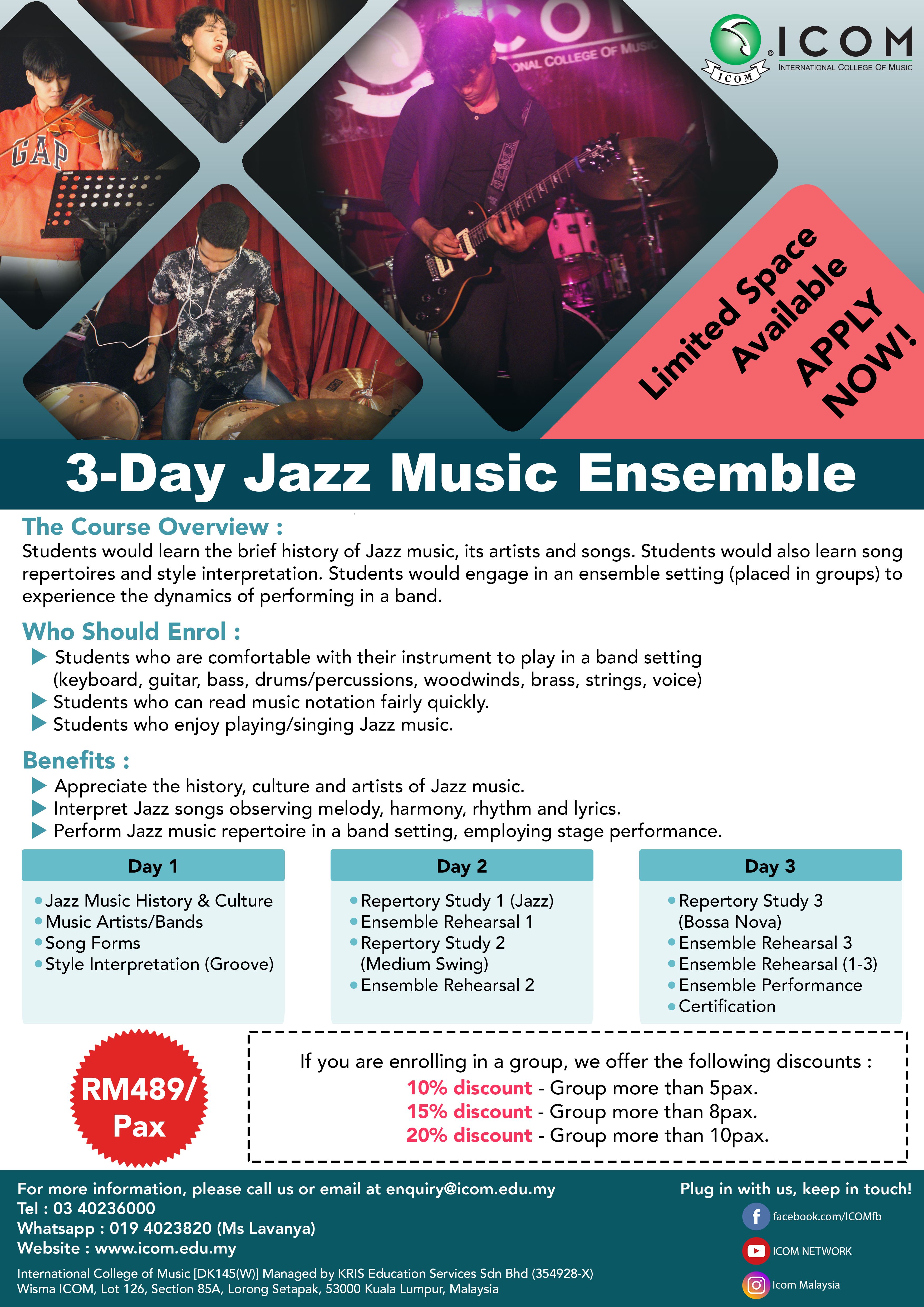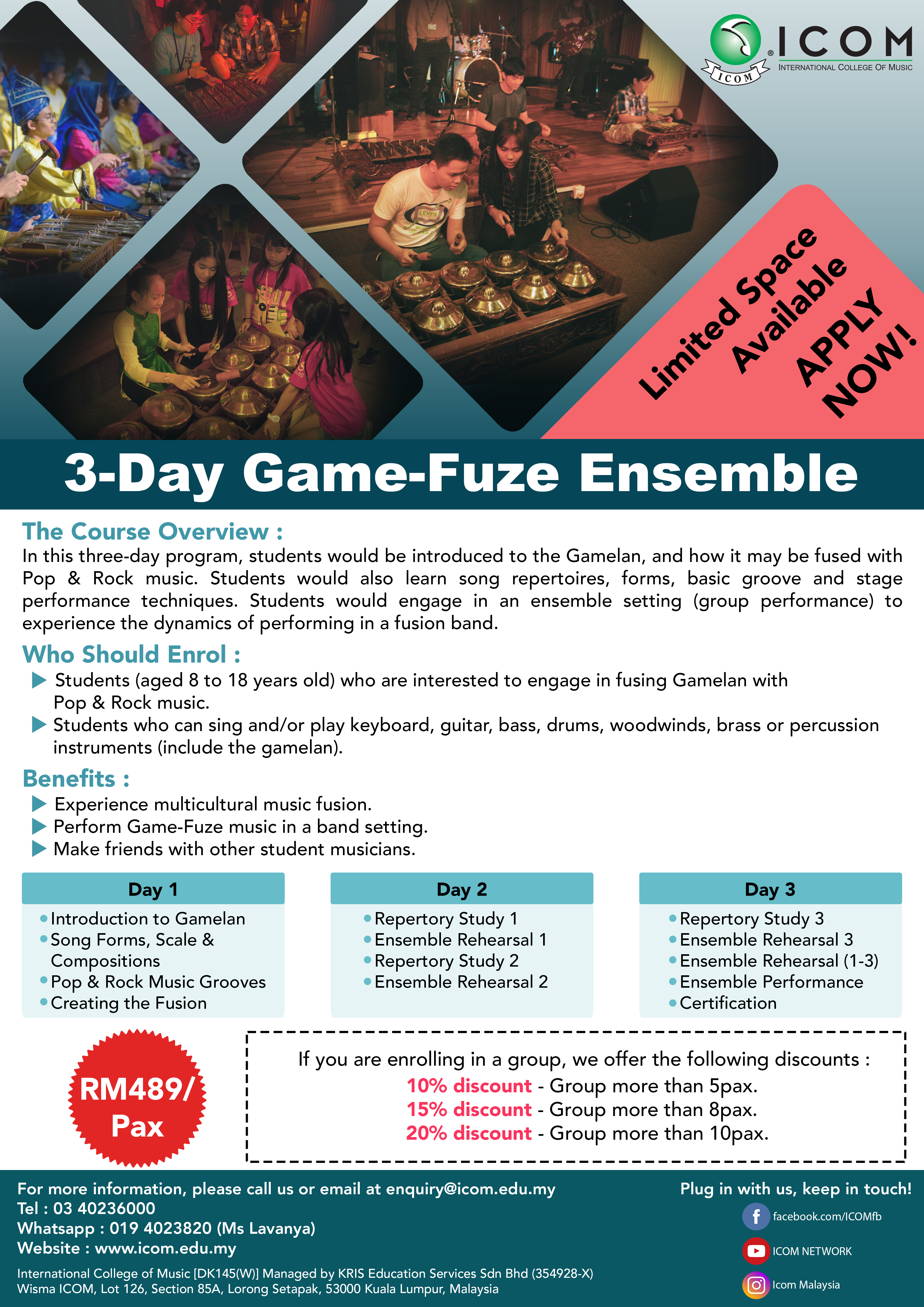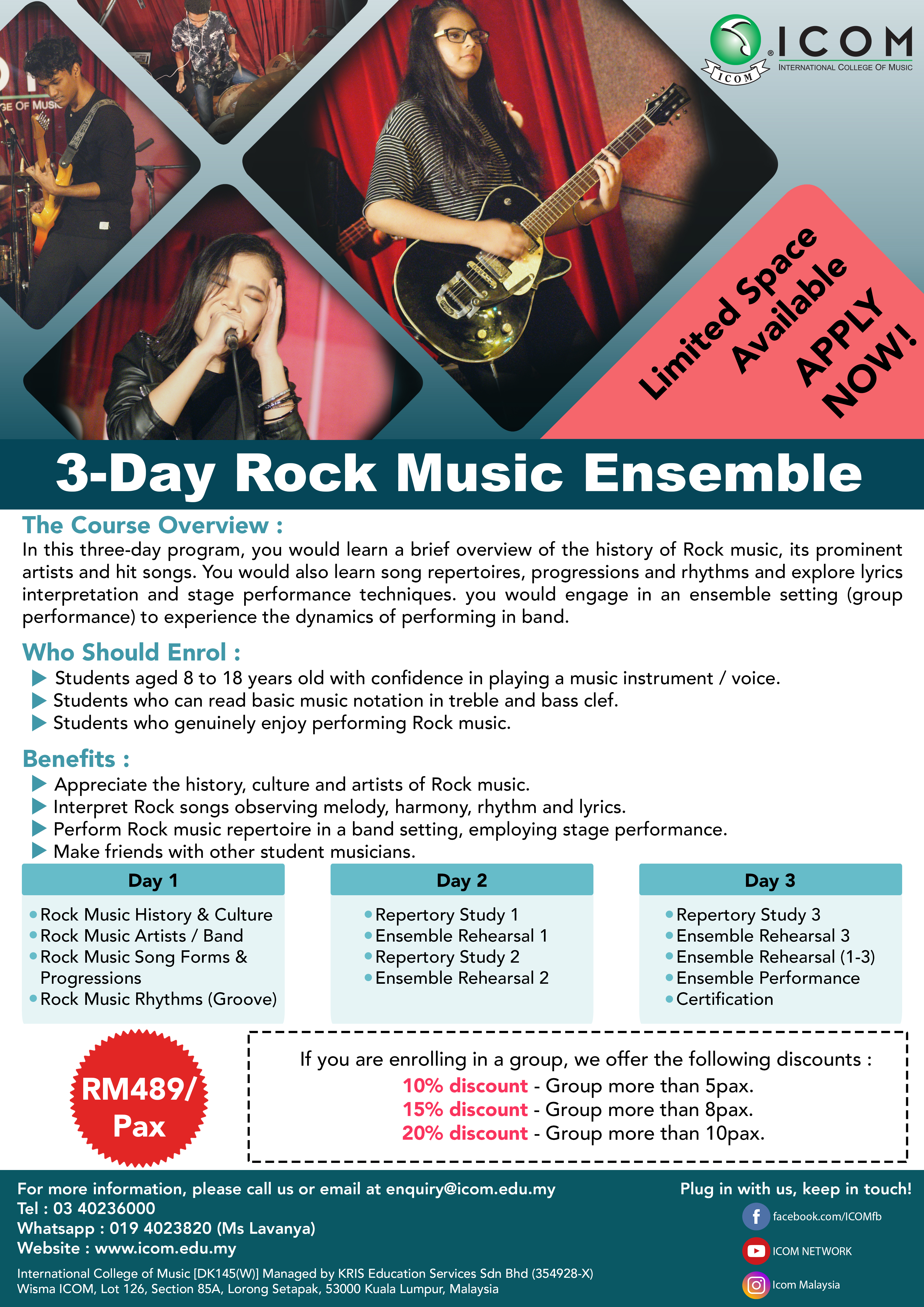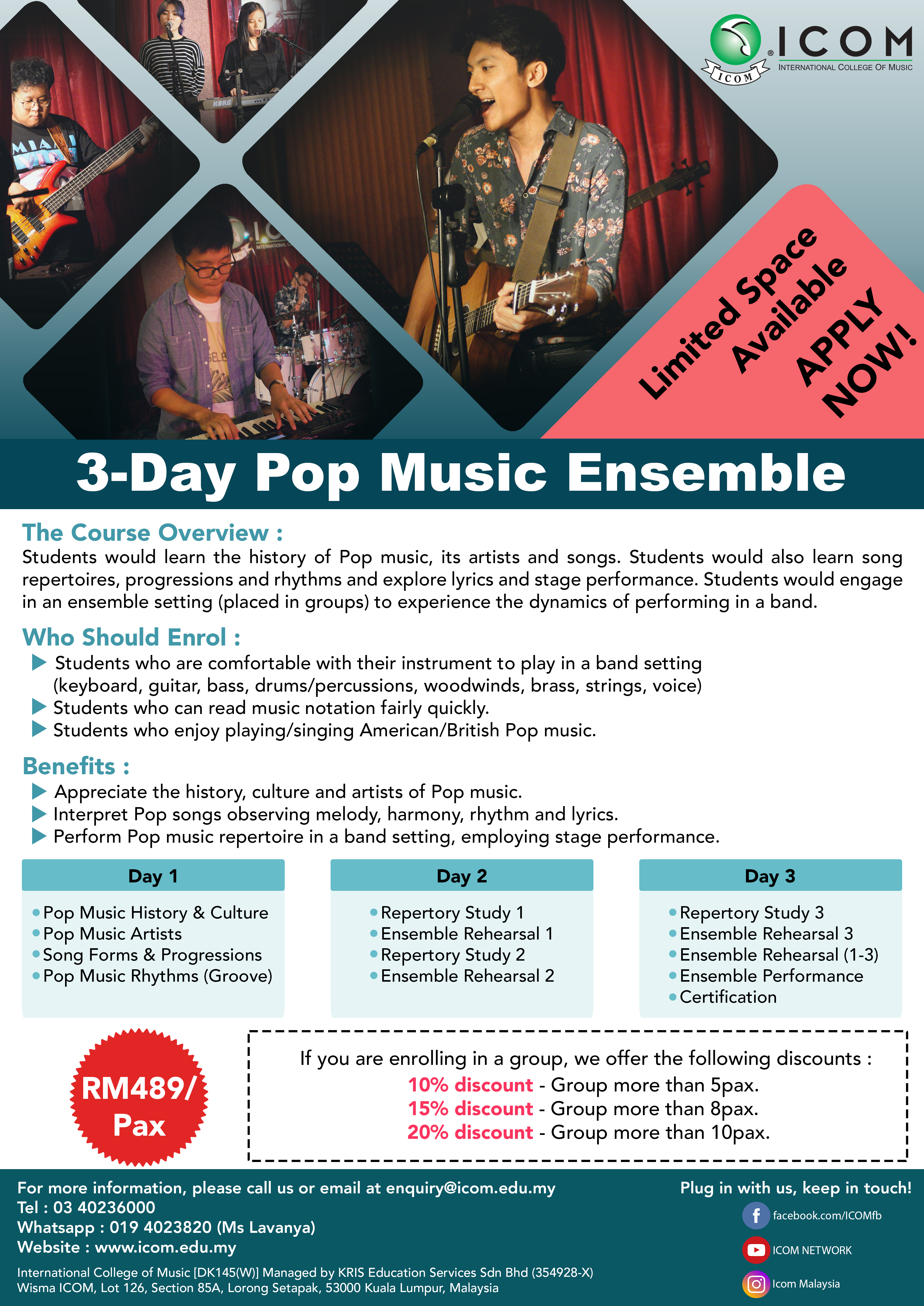 All transactions will be processed in Ringgit Malaysia (RM). International College of Music reserves the right to change pricing at any time without prior notice.