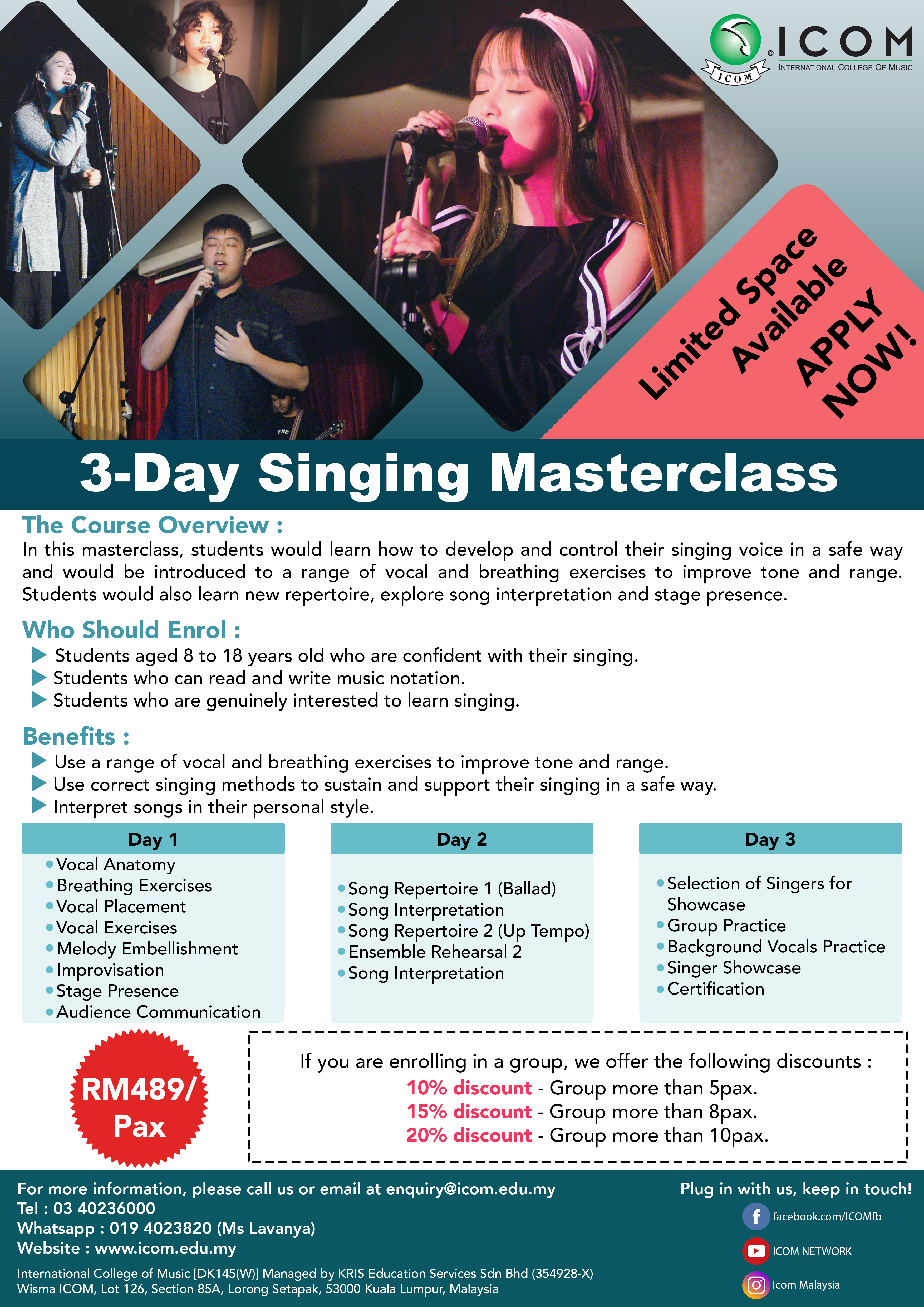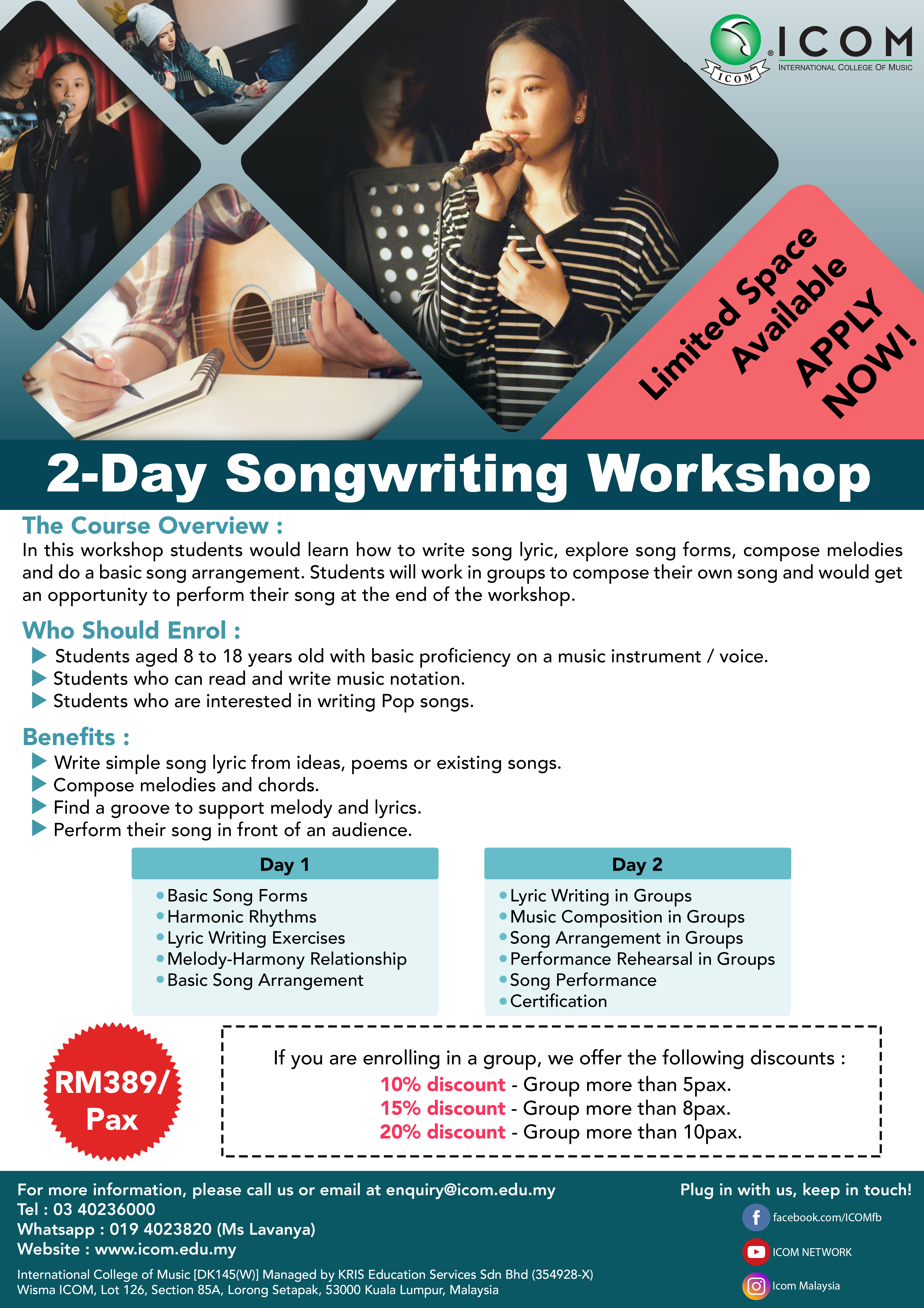The School Holiday Programs range from between 2-day and 3-day and are made available during school holidays from October to December 2019 to attract school music students across public, private and international schools to learn and engage in a vibrant music youth community.